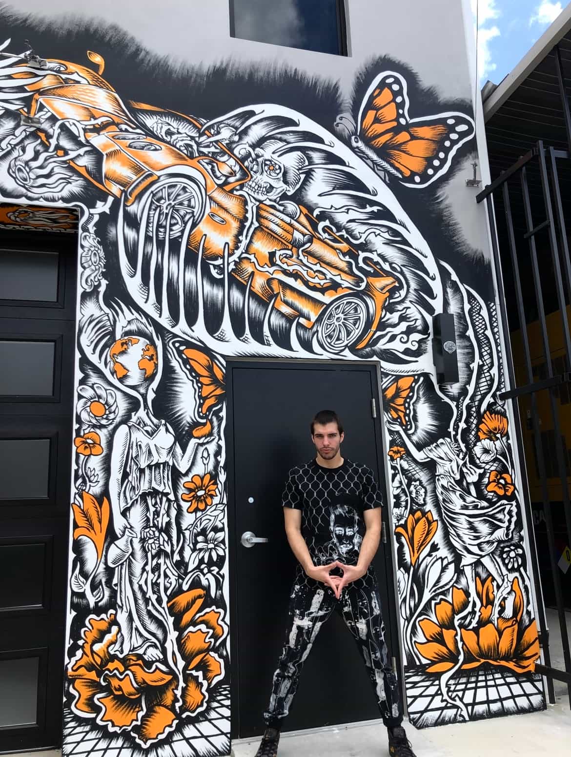 Series of Murals painted for Ikonick Motors car collection decorating the entire facade of the garage.